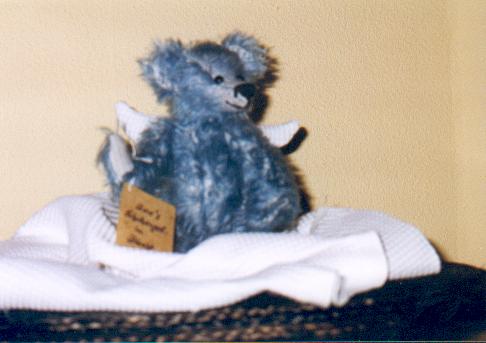 Hallo mein Name ist Blaubärchen, ich bin 23 cm groß und bestehe aus blauem Mohair. Wenn ich Dir gefalle, dann gib bitte "Blaubärchen" bei meiner Mama an. Meine Adoptionsgebühr beträgt € 32,-.