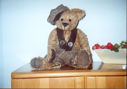 Tach auch, ich bin der Pepe und mein Anzug ist aus Opa's Anzug gefertigt, also schon ganz alt! Ich bin auch (auf) alt (gemacht) und mein Fell ist Mohair. Ich bin 50 cm groß und soll € 132,- kosten, die sich auf jeden Fall lohnen. Wie findet ihr denn meine Freundin Süsse, ist die nicht süss???